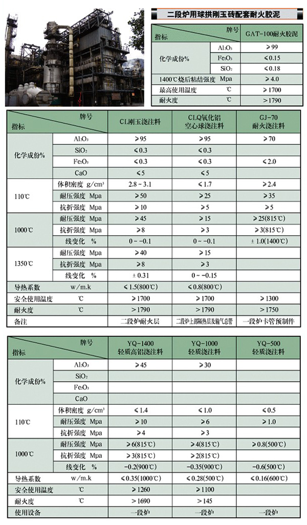 制氫、苯乙烯裝置用耐火材料