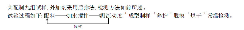 三聚磷酸鈉加入量為分別 0、1%、2%、3%、4%、5%、6%、7%、8%; 木鈣加入量為分別 0、1%、2%、3%、 4%、5%、6%、7%、8%; FDN 高效減水劑加入量分別為 0、1%、2%、3%、4%、5%、6%、7%、8%、9%、10%、 11%、12%。