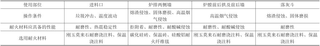 表1 焚燒爐各部位對耐火材料的基本要求