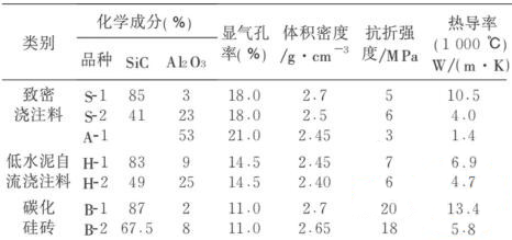 表2 焚燒爐用耐火材料的性能