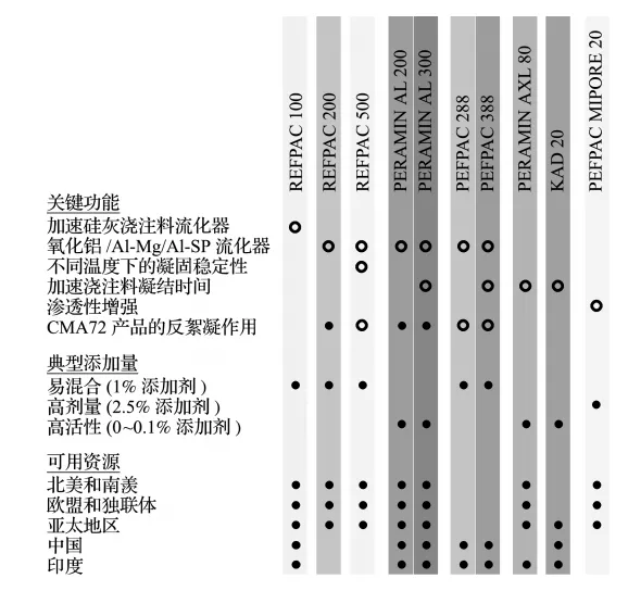 在不同的地方獲取活性化合物,并在加入低水泥澆注料后具有主要的功能性能,見(jiàn)下圖。