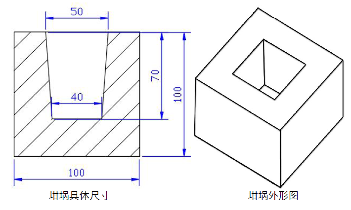 抗渣侵蝕性能采用靜態坩堝法。為增強對比效果、結果的準確度以及降低實驗條件差異帶來的影響,我們參考GB/T8931-2007中規定,對實驗用坩堝做了適當改造。采用了比標準中推薦的圓柱孔坩堝尺寸更大一些的方孔坩堝。一方面提高了加渣量。另一方面避免切割偏離中心(圓臺孔坩堝)導致的誤差。如有必要,方芯坩堝還可做多次平行切割,一次實驗獲得多組數據。坩堝具體尺寸如圖1所示: