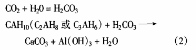 堿的碳酸鹽會與鋁酸鈣水泥的水化產物(水化鋁酸鈣)發生反應,反應按如下方式進行: