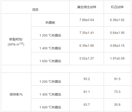 表3 熱震前后試樣的斷裂韌性和保持率