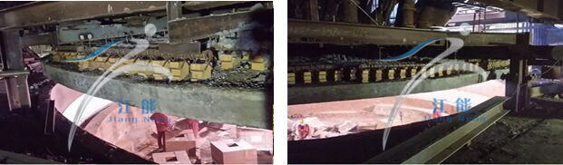在溫度極高和冷熱急變,溫度變化范圍較大和侵蝕較嚴(yán)重的爐蓋中心區(qū)(電極糊周邊)采用我司自行研發(fā)的抗震抗侵高溫澆注料和高溫抗熱震錨固磚。爐蓋外圍采用抗熱震高溫澆注料和高溫抗侵錨固磚。爐蓋整體施工完成后再澆注一層輕質(zhì)保溫澆注料,可以進(jìn)一步的降低能耗。